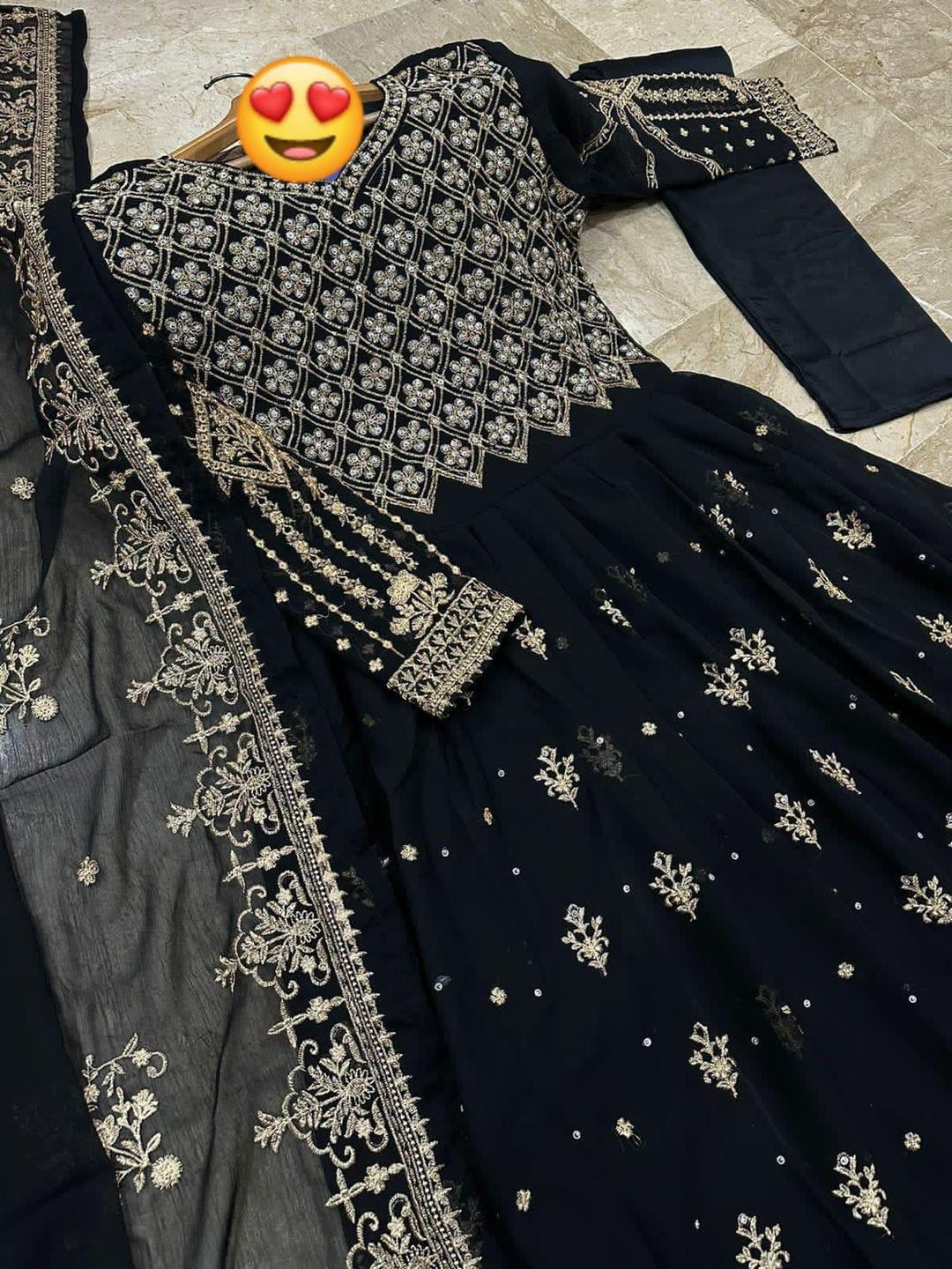 3 Pcs Women’s Stitched Embroidered Black Maxi Suit