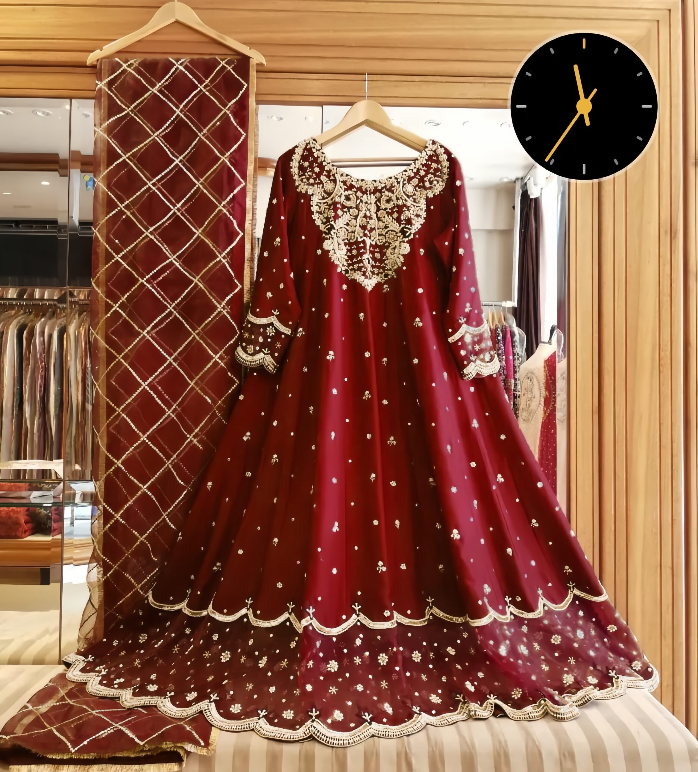 Heavy Neck, Border Embroidery With Handwork Long Maxi With Full Embroidered Dupatta (3Pcs)